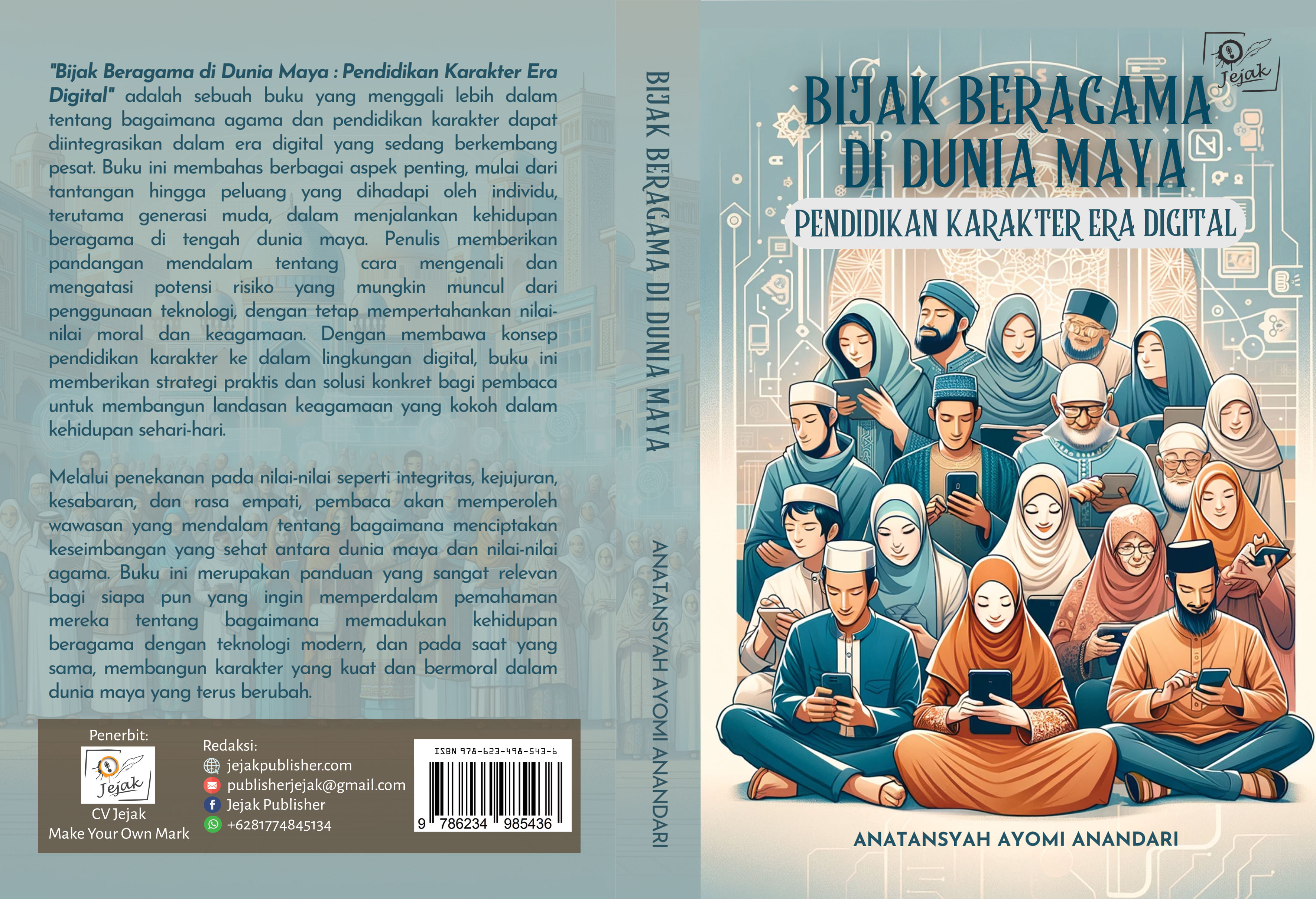 "Bijak Beragama di Dunia Maya: Pendidikan Karakter Era Digital" adalah sebuah buku yang menggali lebih dalam tentang bagaimana agama dan pendidikan karakter dapat diintegrasikan dalam era digital yang sedang berkembang pesat. Buku ini membahas berbagai aspek penting, mulai dari tantangan hingga peluang yang dihadapi oleh individu, terutama generasi muda, dalam menjalankan kehidupan beragama di tengah dunia maya. Penulis memberikan pandangan mendalam tentang cara mengenali dan mengatasi potensi risiko yang mungkin muncul dari penggunaan teknologi, dengan tetap mempertahankan nilai-nilai moral dan keagamaan. Dengan membawa konsep pendidikan karakter ke dalam lingkungan digital, buku ini memberikan strategi praktis dan solusi konkret bagi pembaca untuk membangun landasan keagamaan yang kokoh dalam kehidupan sehari-hari.