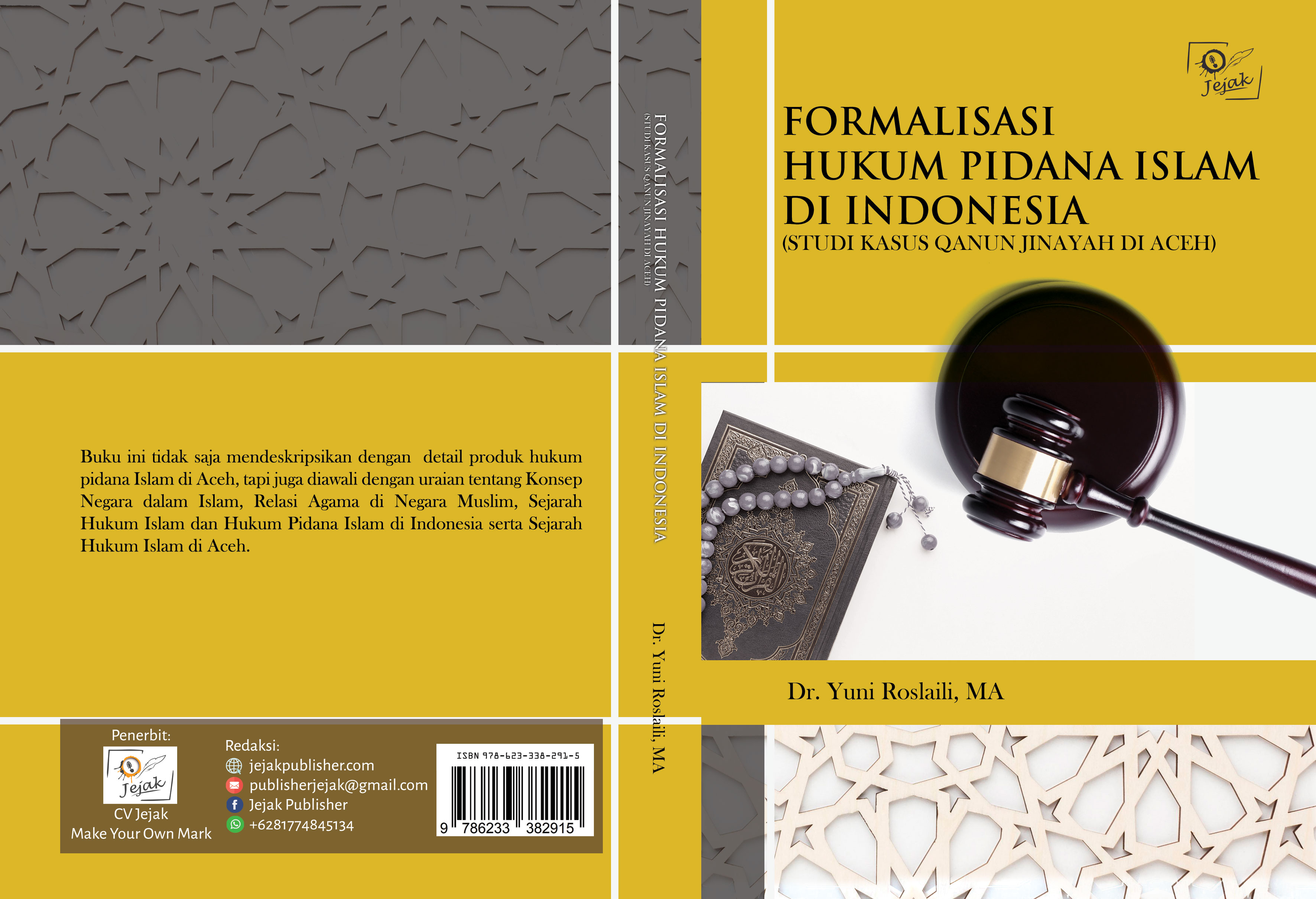Buku ini tidak saja mendeskripsikan dengan detail produk hukum pidana Islam di Aceh, tapi juga diawali dengan uraian tentang Konsep Negara dalam Islam, Relasi Agama di Negara Muslim, Sejarah Hukum Islam dan Hukum Pidana Islam di Indonesia serta Sejarah Hukum Islam di Aceh.