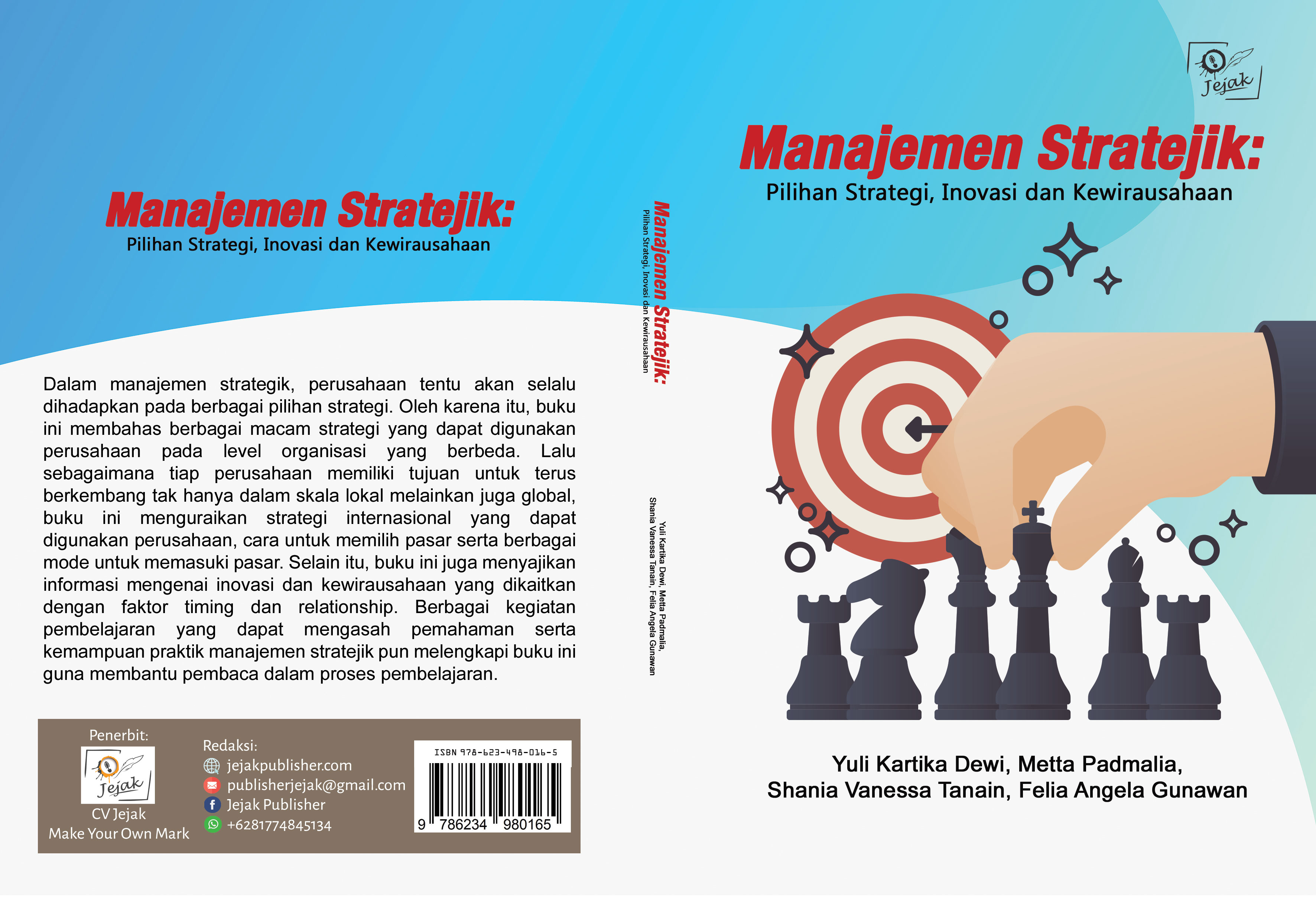 Dalam manajemen strategik, perusahaan tentu akan selalu dihadapkan pada berbagai pilihan strategi. Oleh karena itu, buku ini membahas berbagai macam strategi yang dapat digunakan perusahaan pada level organisasi yang berbeda. Lalu sebagaimana tiap perusahaan memiliki tujuan untuk terus berkembang tak hanya dalam skala lokal melainkan juga global, buku ini menguraikan strategi internasional yang dapat digunakan perusahaan, cara untuk memilih pasar serta berbagai mode untuk memasuki pasar. Selain itu, buku ini juga menyajikan informasi mengenai inovasi dan kewirausahaan yang dikaitkan dengan faktor timing dan relationship. Berbagai kegiatan pembelajaran yang dapat mengasah pemahaman serta kemampuan praktik manajemen stratejik pun melengkapi buku ini guna membantu pembaca dalam proses pembelajaran.