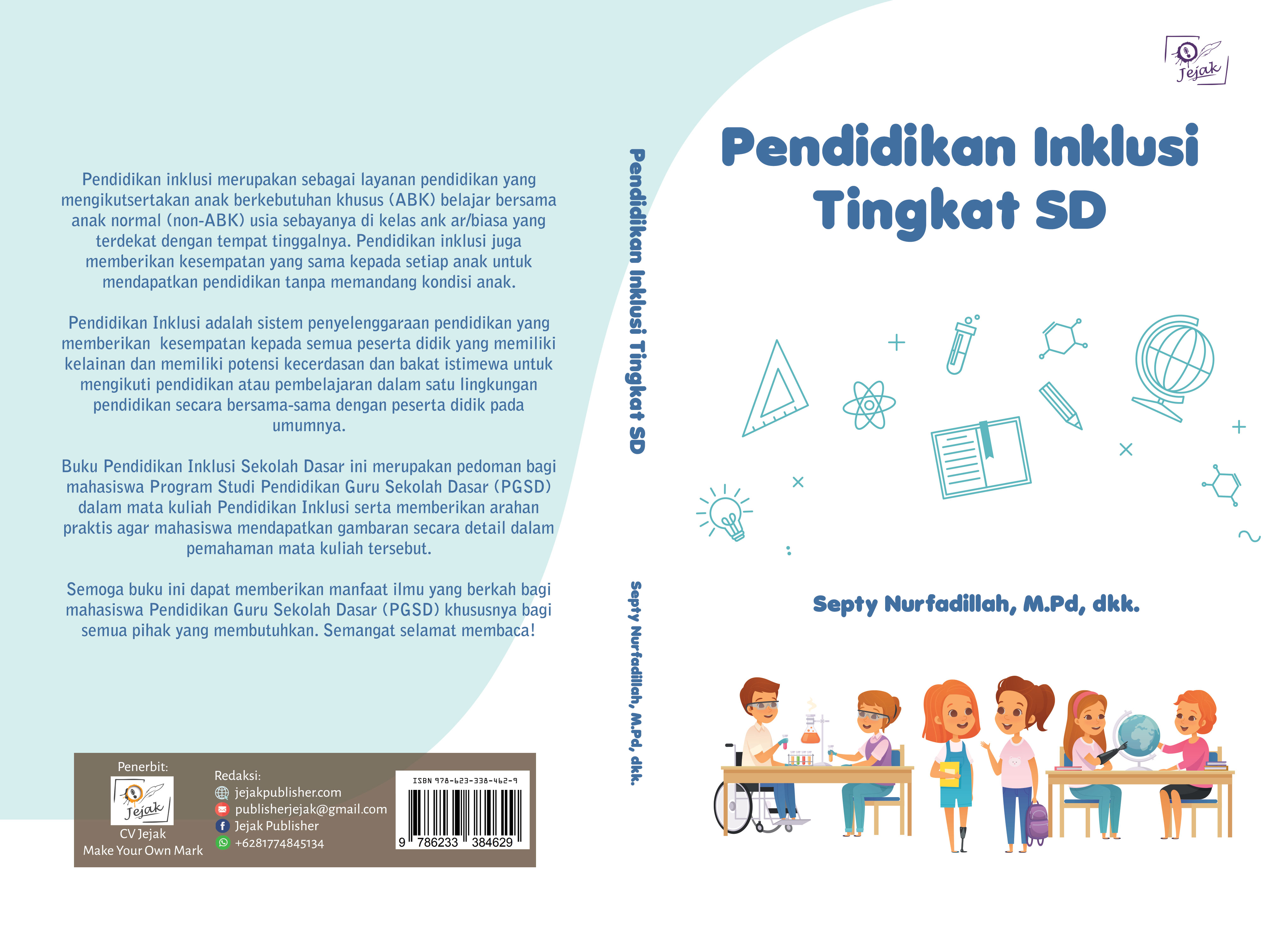 Buku Pendidikan Inklusi Sekolah Dasar ini merupakan pedoman bagi mahasiswa Program Studi Pendidikan Guru Sekolah Dasar (PGSD) dalam mata kuliah Pendidikan Inklusi serta memberikan arahan praktis agar mahasiswa mendapatkan gambaran secara detail dalam pemahaman mata kuliah tersebut.