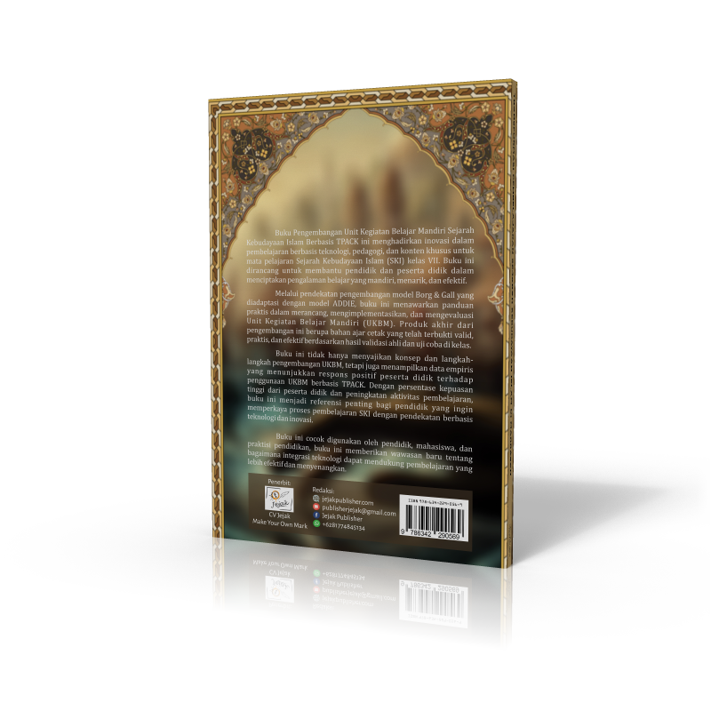 Buku Sejarah Kebudayaan Islam di Madrasah: Implementasi TPACK pada Unit Kegiatan Belajar Mandiri mengupas bagaimana inovasi pembelajaran berbasis teknologi dapat mengoptimalkan pemahaman peserta didik terhadap Sejarah Kebudayaan Islam (SKI). Dengan menerapkan kerangka Technological Pedagogical Content Knowledge (TPACK), buku ini menghadirkan pendekatan yang mengintegrasikan teknologi, metode pengajaran, dan materi SKI secara harmonis dalam pembelajaran di madrasah.